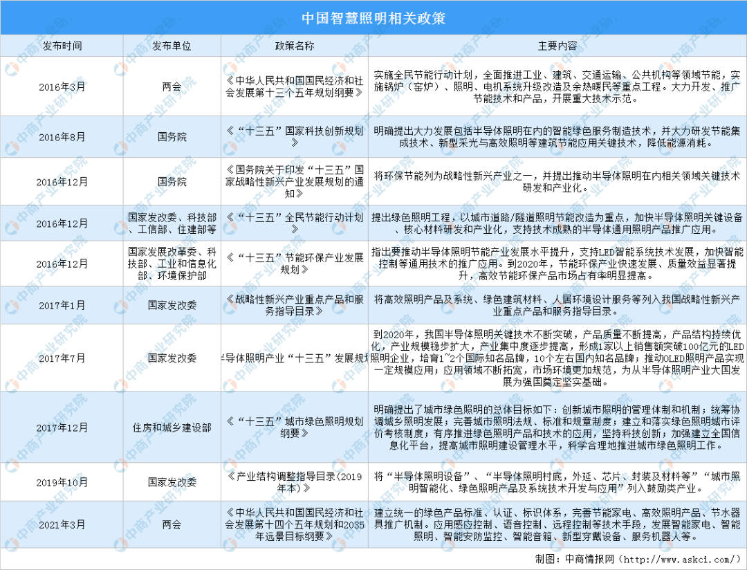 近年來(lái),在萬(wàn)物互聯(lián)的時(shí)代背景下,云計(jì)算、大數(shù)據(jù)、人工智能、物聯(lián)網(wǎng)等前沿技術(shù)給照明行業(yè)發(fā)展帶來(lái)前所未有的影響,智能照明進(jìn)入了飛速發(fā)展時(shí)期。中國(guó)重視智能照明產(chǎn)業(yè)發(fā)展,中國(guó)十四五規(guī)劃綱要提出,完善高效照明產(chǎn)品推廣機(jī)制,發(fā)展智能照明產(chǎn)業(yè)。